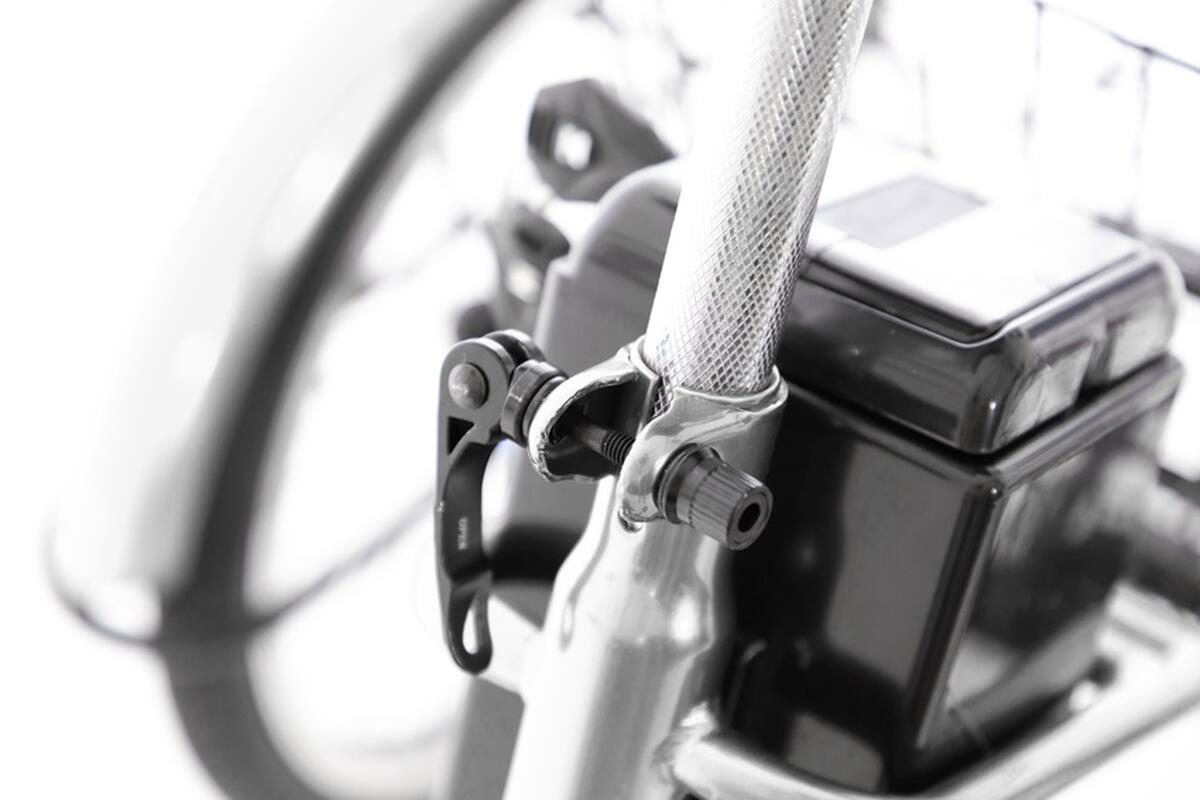 Výbava s tromi kolesami a elektrickým pohonom poskytuje stabilitu, bezpečnosť a pomocnú silu aj pri dlhších trasách či na kopcovitých terénoch.
