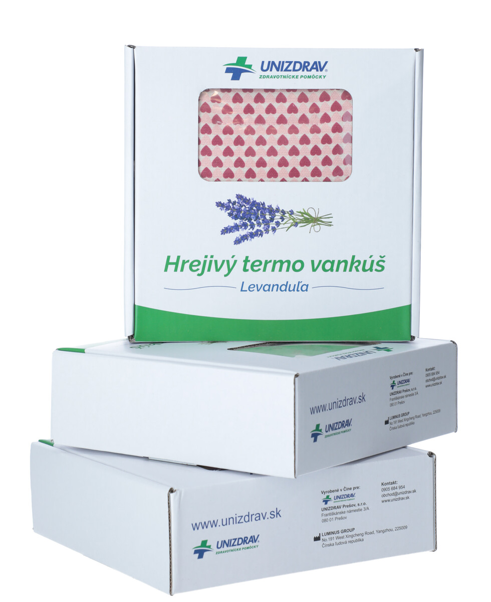 Hrejivý termo vankúš UNIZDRAV Levanduľa Srdcia - POŠKODENÝ POŤAH