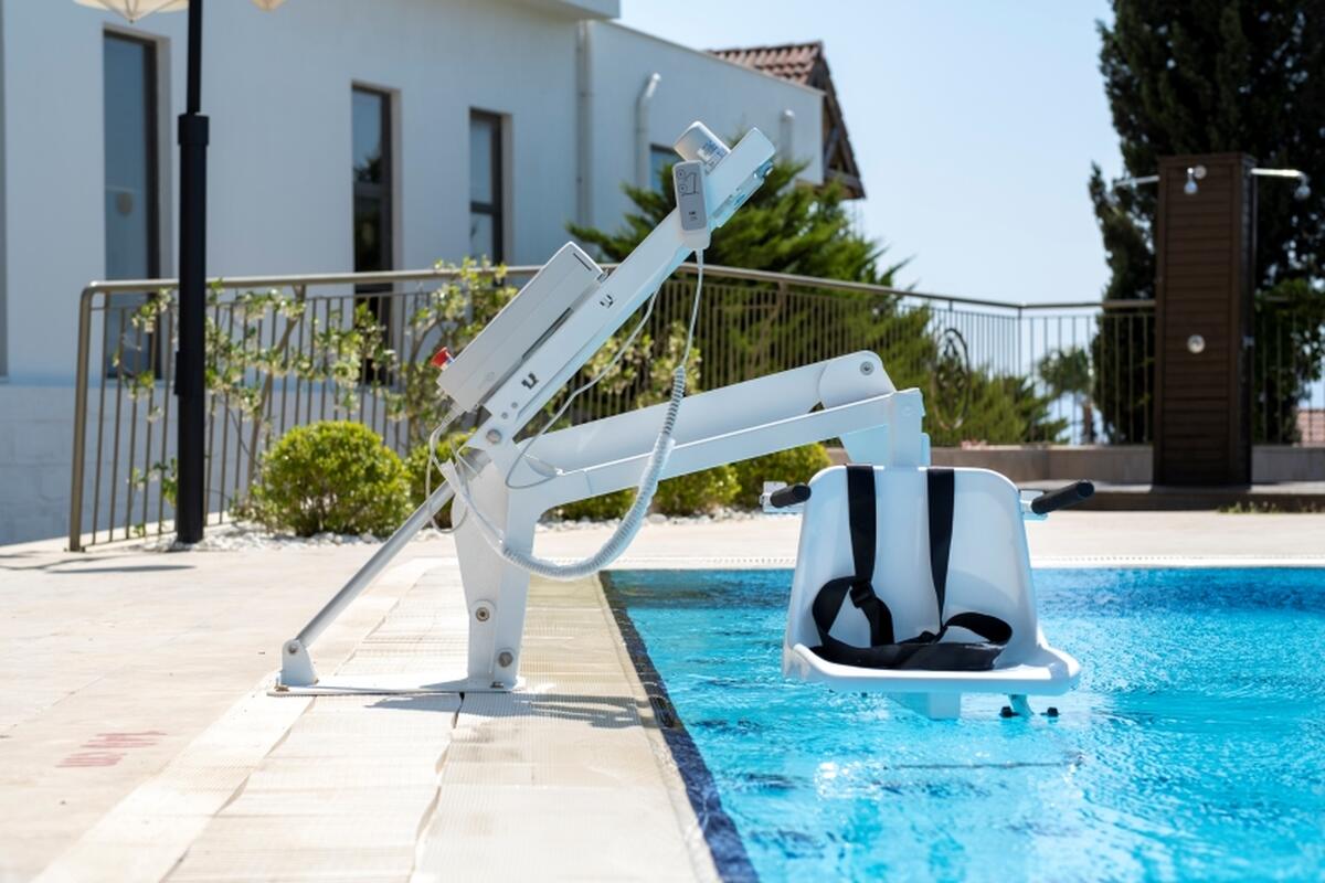 Bazénový zdvihák umožňuje bezpečný, komfortný a nezávislý vstup do bazéna osobám s obmedzenou pohyblivosťou či seniorom.