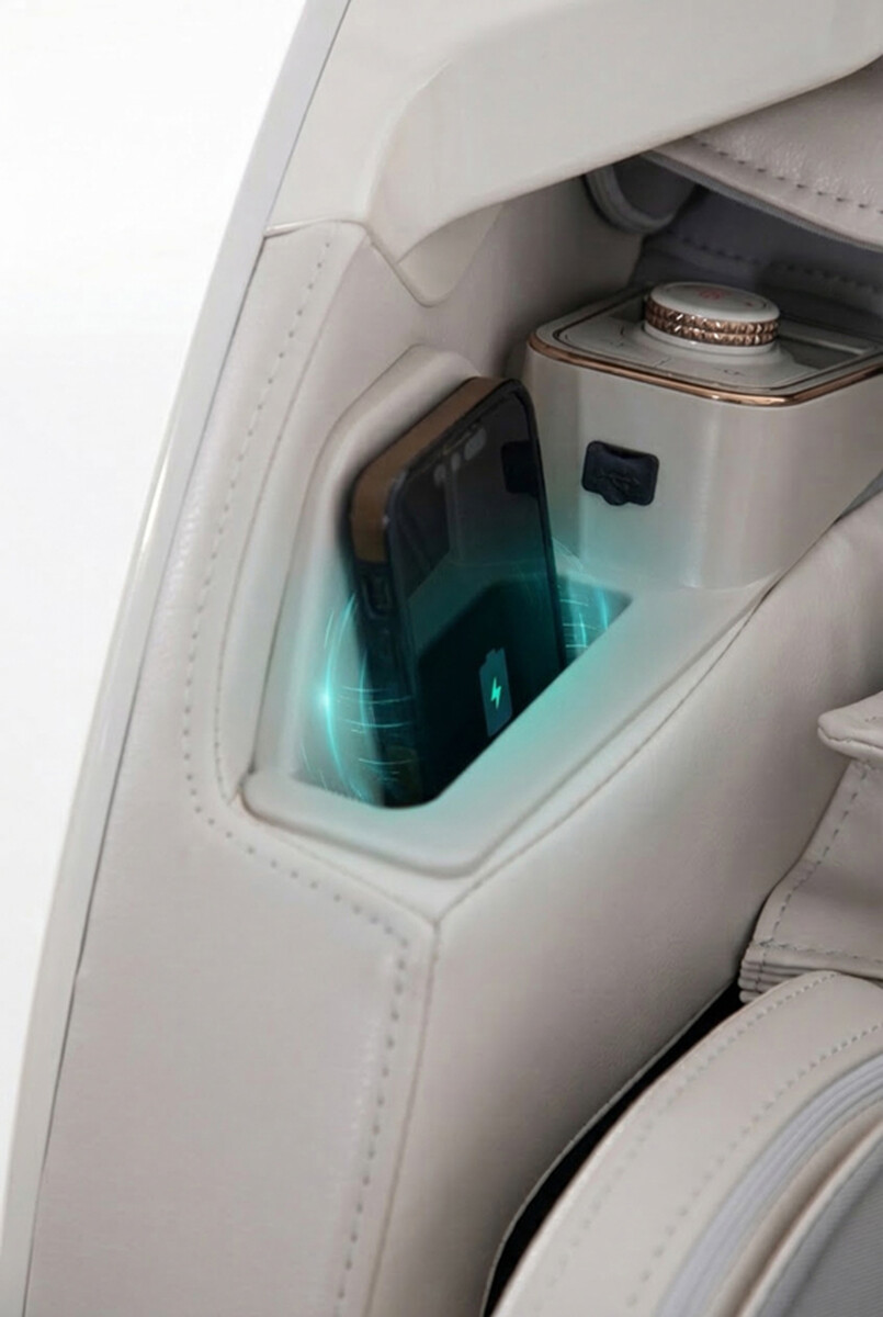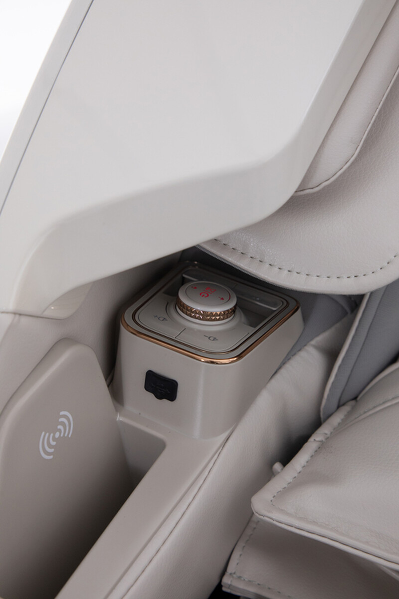 A ak preferujete oddych pri hudbe, stačí ak si vyberiete niektorý zo 6 špeciálnych programov, ktoré sú sprevádzané jemnou relaxačnou hudbou. Alebo môžete prepojiť svoj smartfón s kreslom cez Bluetooth a prehrávať svoje obľúbené skladby či podcasty. Zabudované reproduktory poskytnú čistý zvuk vo vami zvolenej intenzite a praktické bezdrôtové alebo USB nabíjanie zasa kontinuálne dobíjanie smartfónu, aby ste aj po skončení masáže mali vždy plnú batériu.