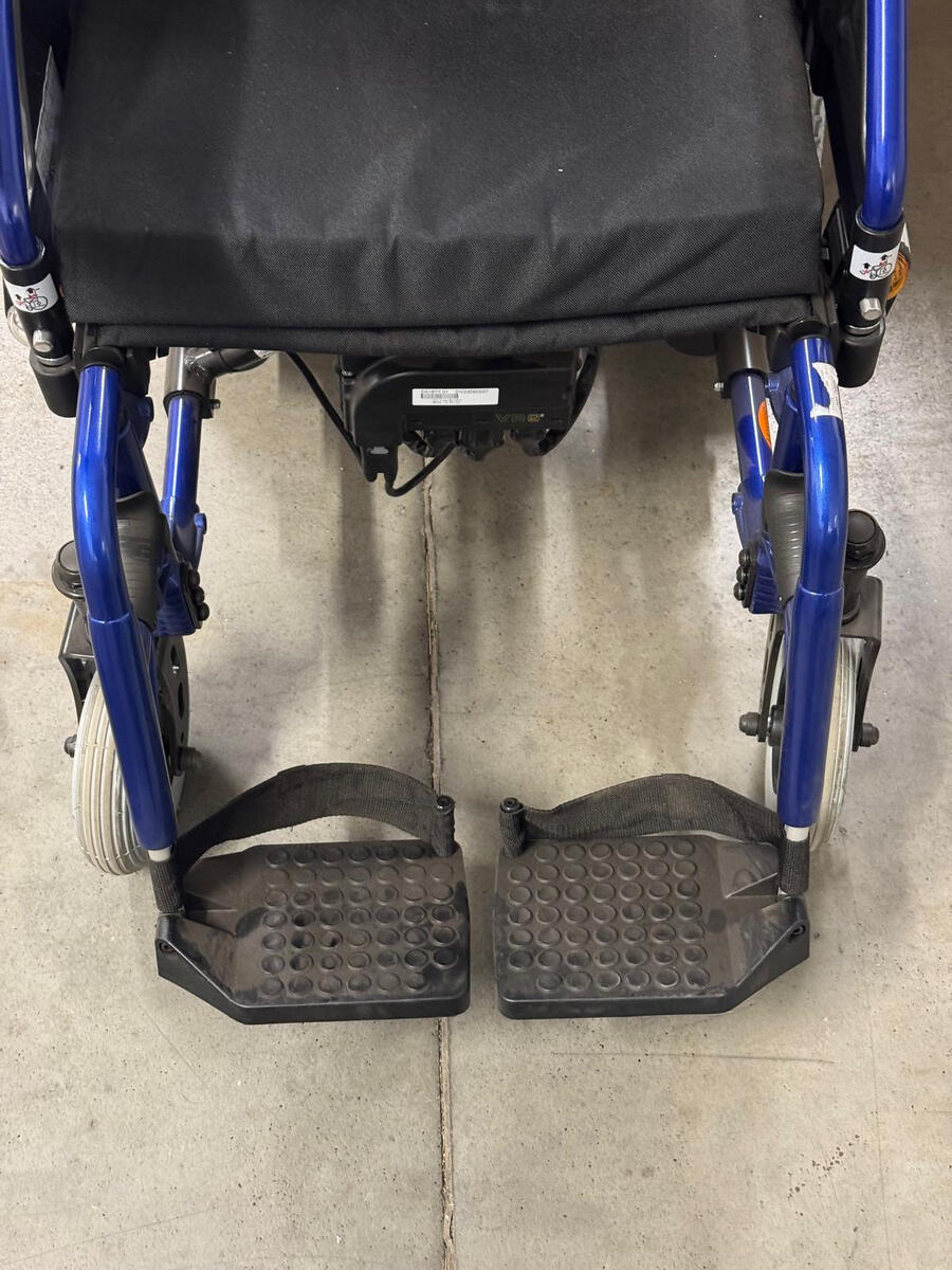 Opierky nôh sa dajú sklopiť, výškovo nastaviť a majú bezpečnostný látkový pás za pätami, čím sa zabráni posunutiu chodidla dozadu pod vozík..