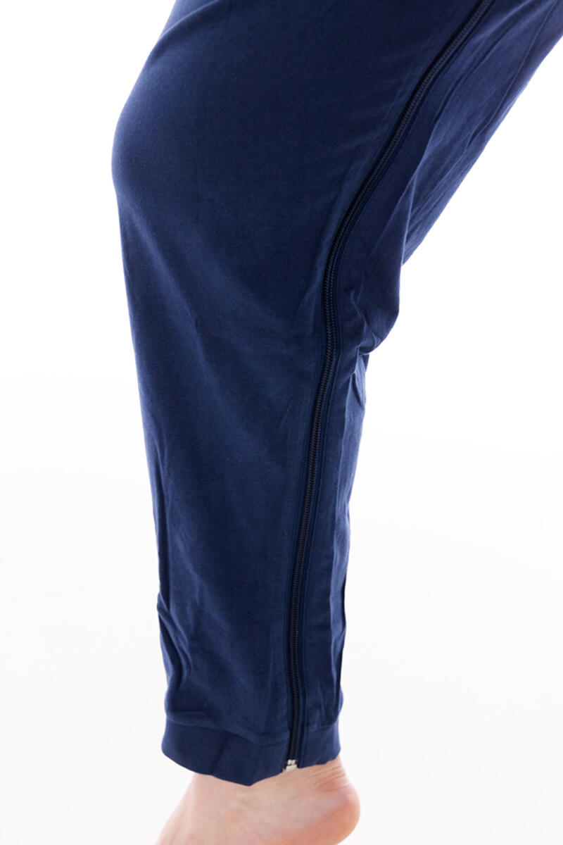 Tento inkontinenčný overal je na chrbte a na nohaviciach doplnený zipsom, ktorý umožňuje rýchlejšie prezliekanie, hygienu aj výmenu plienok – bez námahy a zbytočného polohovania pacienta. Na nohavicovom zipse je užitočným prvkom istenie, ktoré zabráni samovoľnému rozopnutiu.