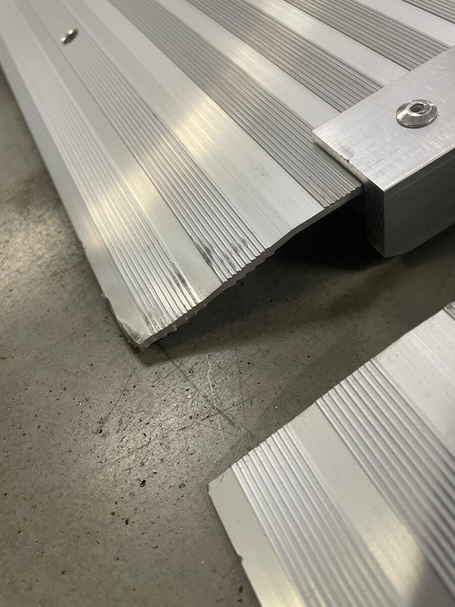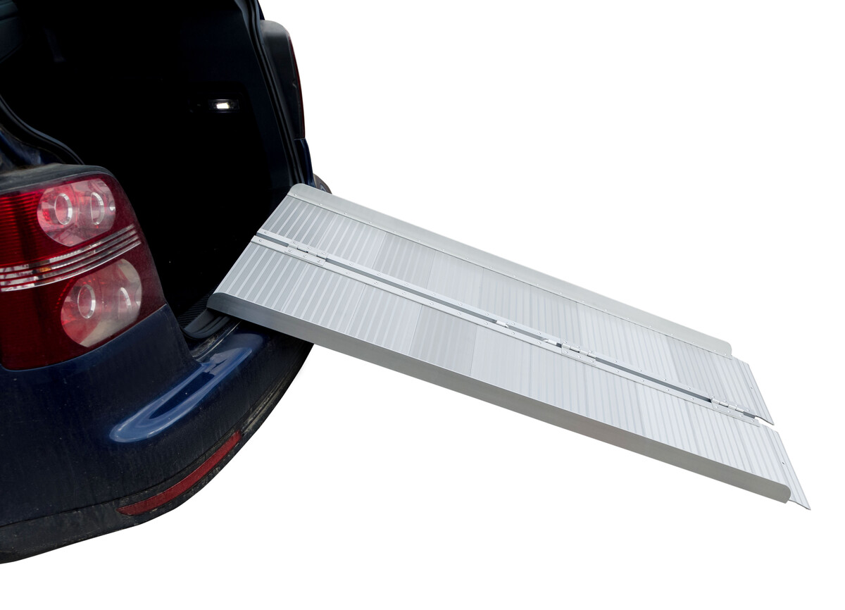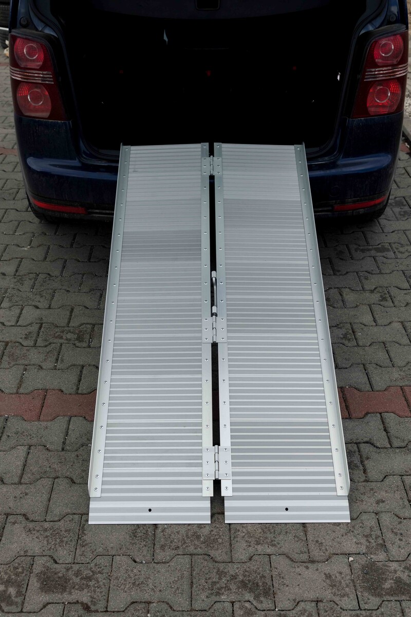 Nájazdová rampa je vyrobená z hliníka, má zvýšené okraje a nekĺzavý povrch. Ideálna k bezpečnému naloženiu invalidného vozíka, mopedu, bicykla a rôznych iných  prostriedkov, ktoré potrebujú prekonať výškový rozdiel.