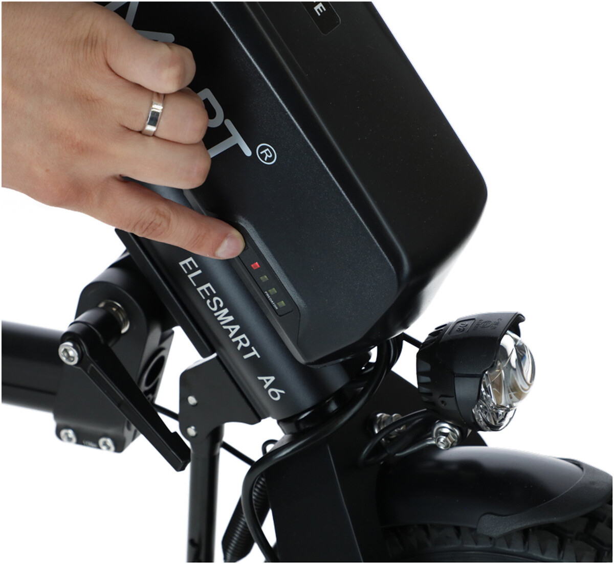 V pohone sa nachádza nabíjateľná lítiová batéria s kapacitou 12,8 Ah a úsporný 500 W motor, ktorý si hravo poradí aj so stúpaním do svahu so sklonom 8 – 10°. Maximálna rýchlosť elektrického prídavného pohonu Elesmart A6 je 25 km/h a dojazd na jedno nabitie približne 60 km (v závislosti od aktuálnych podmienok vozovky, zaťaženia a štýlu jazdy).