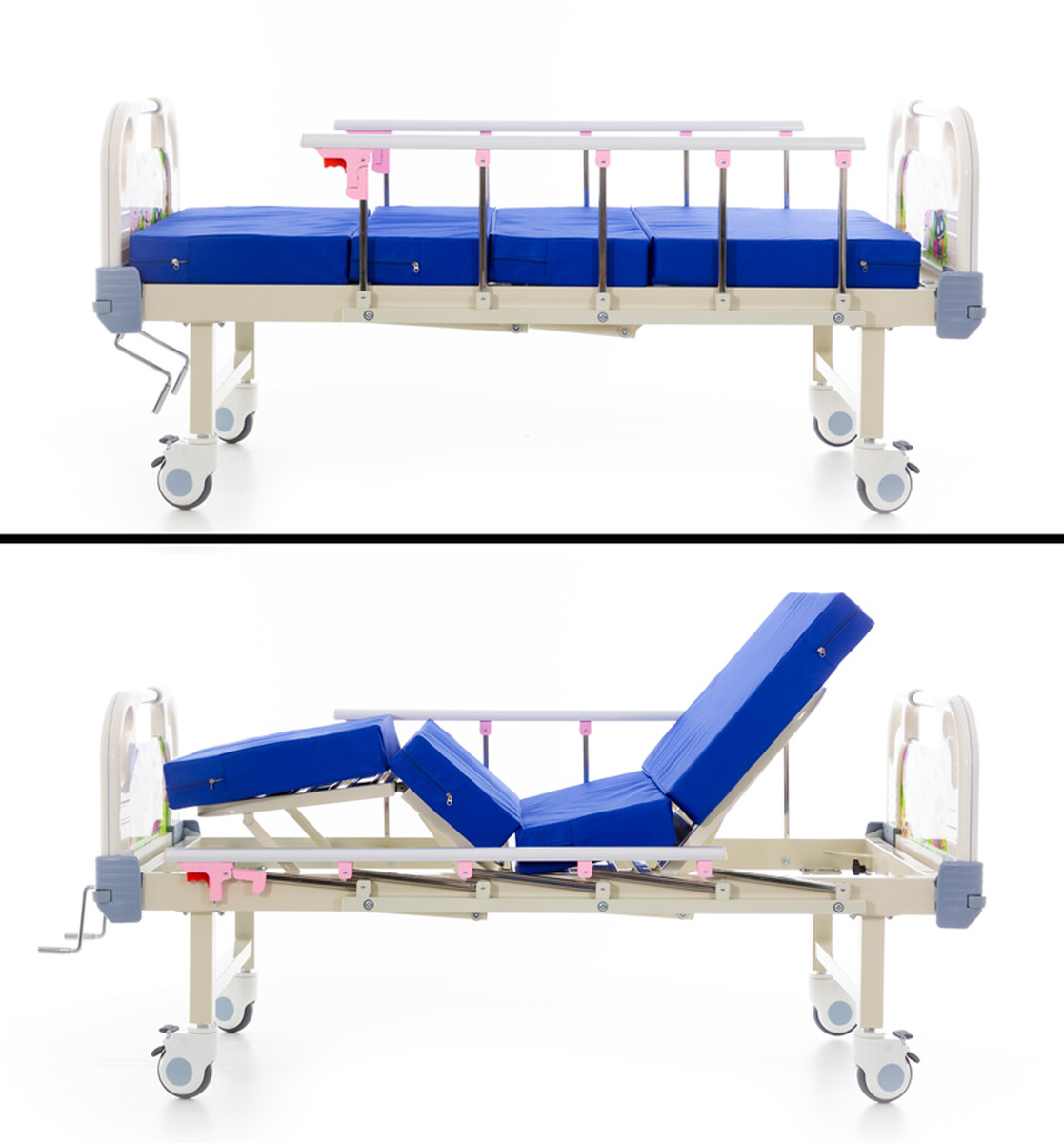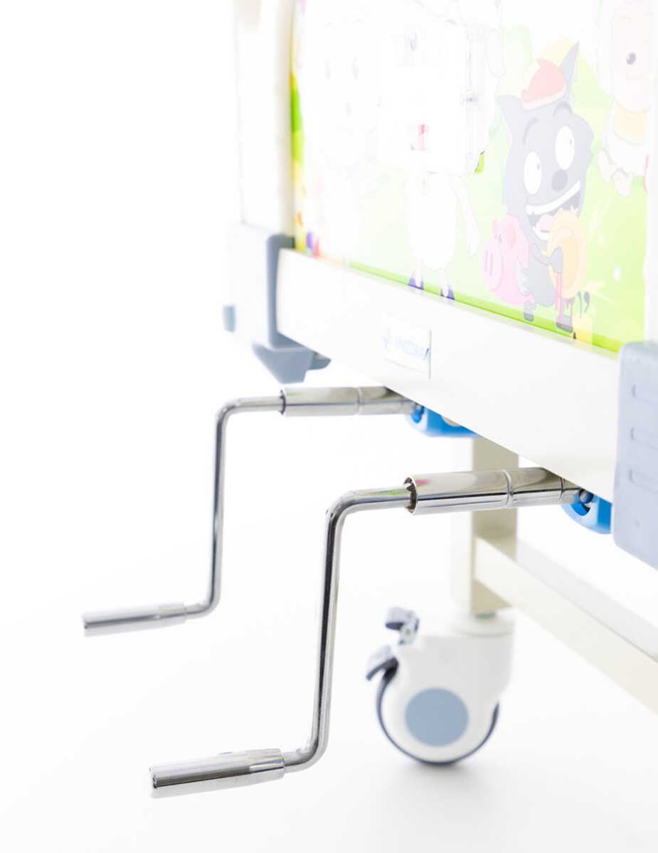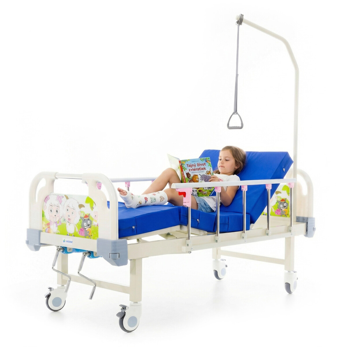 Detská mechanická polohovacia posteľ spája funkčnosť a bezpečnosť štandardnej nemocničnej postele s hravým farebným dizajnom, ktorý malým pacientom spríjemní čas strávený na lôžku. Uplatnenie nájde v zdravotníckych zariadeniach aj v rámci domácej starostlivosti.