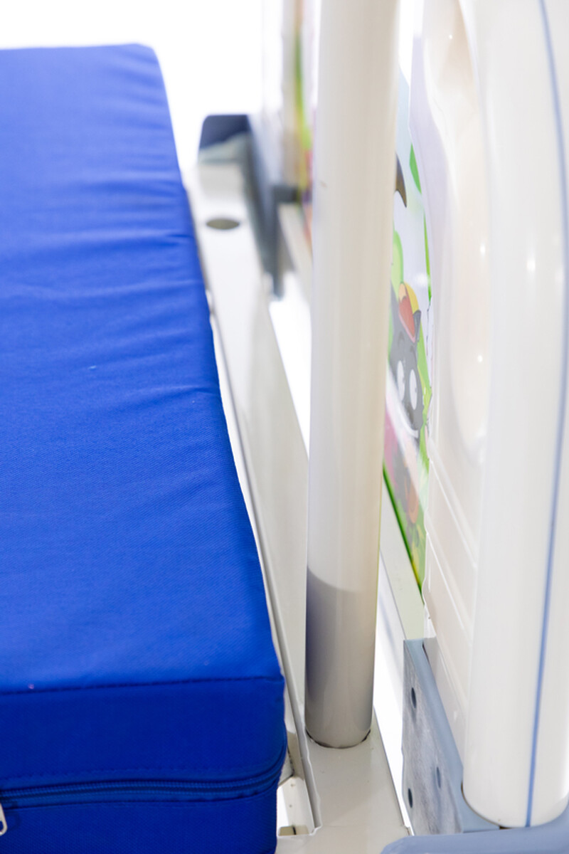 Výška postele dosahuje od zeme po matrac 61,5 cm, čím zjednodušuje presun dieťaťa na vozík či stoličku. Samostatnosť pacienta podporí aj hrazda s trianglom a nastaviteľným popruhom.