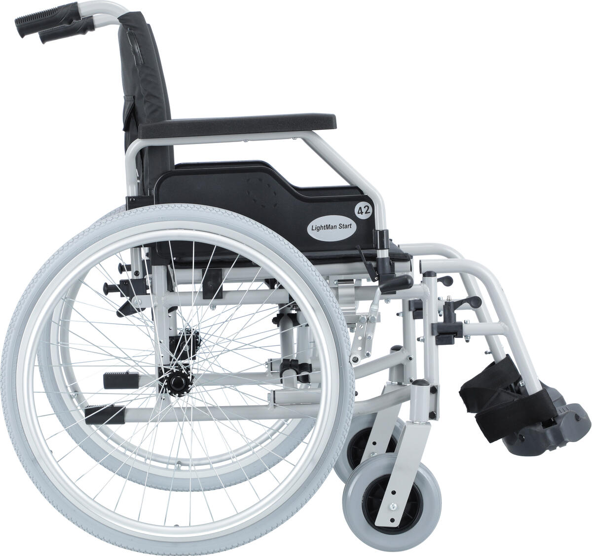 Opierka nôh je u vozíka odnímateľná a sklopná do strany. Pre lepšie nastupovanie sa stúpačky vyklápajú smerom hore a nabok. Vozík je vybavený odnímateľnými zadnými kolesami, ktoré sa demontujú zatlačením poistky a vysunutím kolesa.