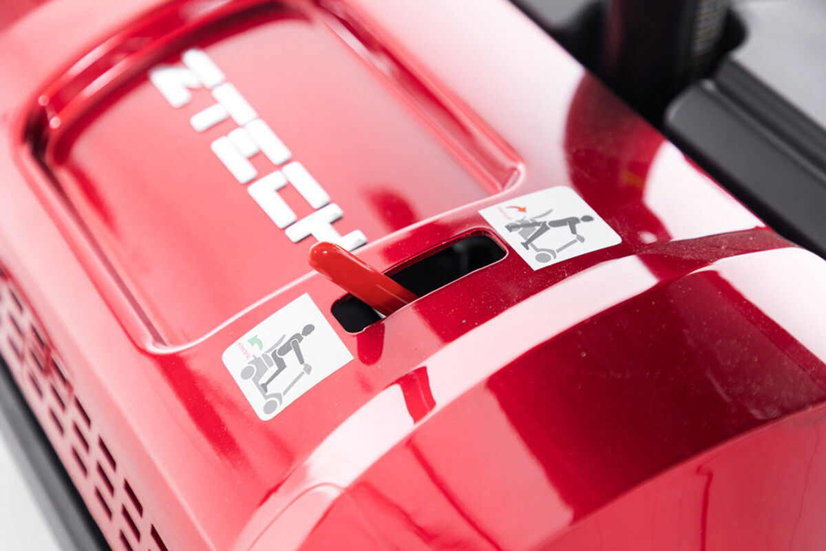 O bezpečnosť počas prevádzky sa stará elektromagnetická brzda, automatické zastavenie po uvoľnení ovládacej páčky, ochrana proti preťaženiu či kolieska proti prevráteniu. Nechýba ani predné LED osvetlenie, klaksón či prehľadný indikátor stavu batérie.