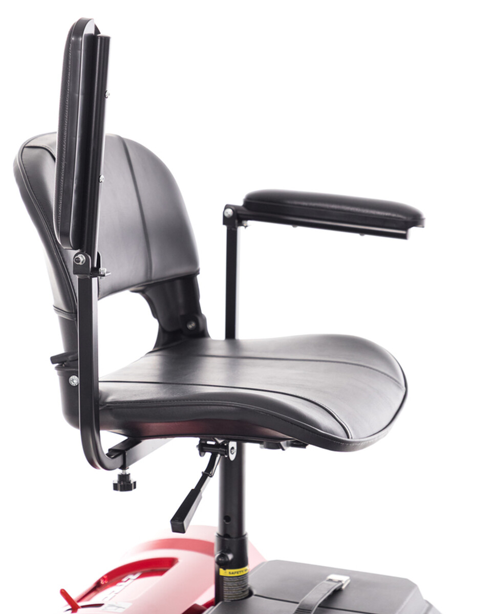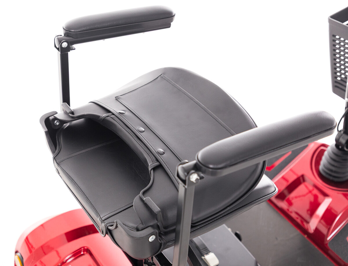 Pre čo najväčšie pohodlie má skúter čalúnené, otočné sedadlo, výškovo nastaviteľné operadlo, sklopné lakťové opierky a nastaviteľný uhol riadidiel. Praktickým doplnkom je aj predný košík, ktorý oceníte na odkladanie osobných vecí či pri menších nákupoch.