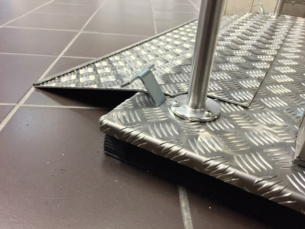 Zdvíhacia plošina má odolnú, robustnú konštrukciu z kvalitnej nehrdzavejúcej ocele a skladací bezpečnostný mech, ktorý chráni používateľa pri pohybe plošiny.