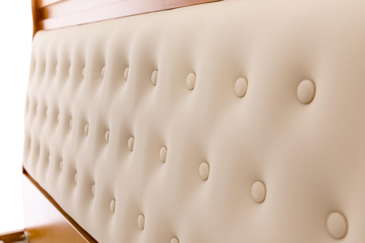Konštrukcia postele je vyrobená z ocele s kvalitnou povrchovou úpravou. Doplnená je o dizajnové drevené čelá, koženkové čalúnenie a výklopné bočné zábrany, ktoré zaručia vyššiu bezpečnosť a jednoduchšie presuny z/na lôžko. Ľahkú manipuláciu a stabilné zaistenie na mieste umožnia uzamykateľné kolieska.