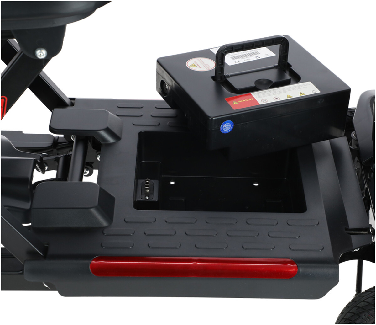 Elektrický vozík je vybavený vyberateľnou lítiovou batériou s kapacitou 25 Ah, čo uľahčuje nabíjanie a prípadnú výmenu. Skúter je teda možné nabíjať buď priamo alebo batériu jednoducho vybrať a nabiť kdekoľvek inde, kde je to pohodlnejšie.