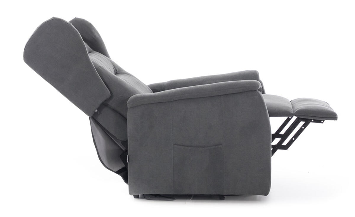 Elektrické polohovacie kreslo s vyklápaním COMFORT+ ponúkame v obľúbenom antracitovom dekore. Čalúnené je do jemnej, kvalitnej tkaniny, ktorá je príjemná na dotyk a ľahko sa udržiava. Stabilná železná konštrukcia zaručuje bezpečnosť a dlhú životnosť produktu.