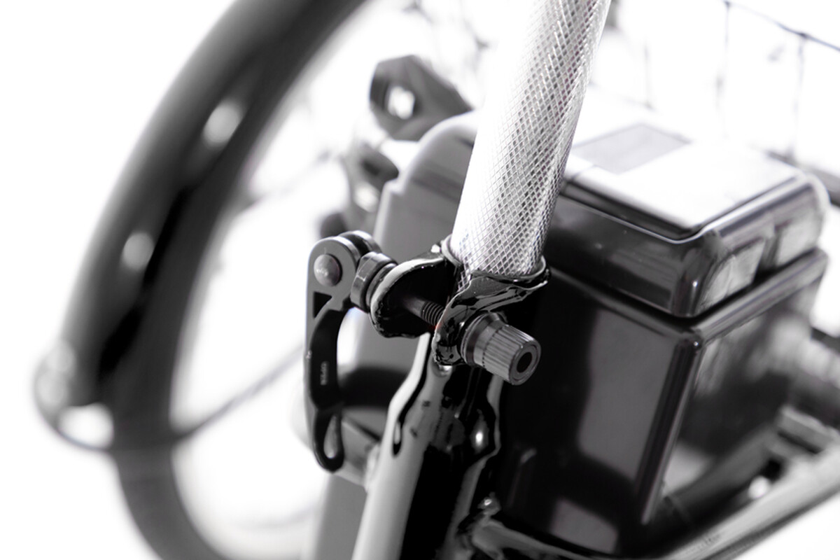 Výbava s tromi kolesami a elektrickým pohonom poskytuje stabilitu, bezpečnosť a pomocnú silu aj pri dlhších trasách či na kopcovitých terénoch.