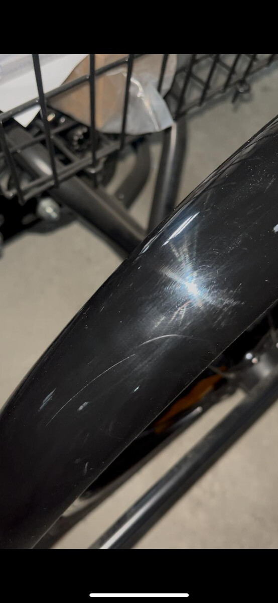 Plne funkčný tovar s  nedostatkami – na blatníku elektrického bicykla sa nachádzajú viditeľné škrabance.