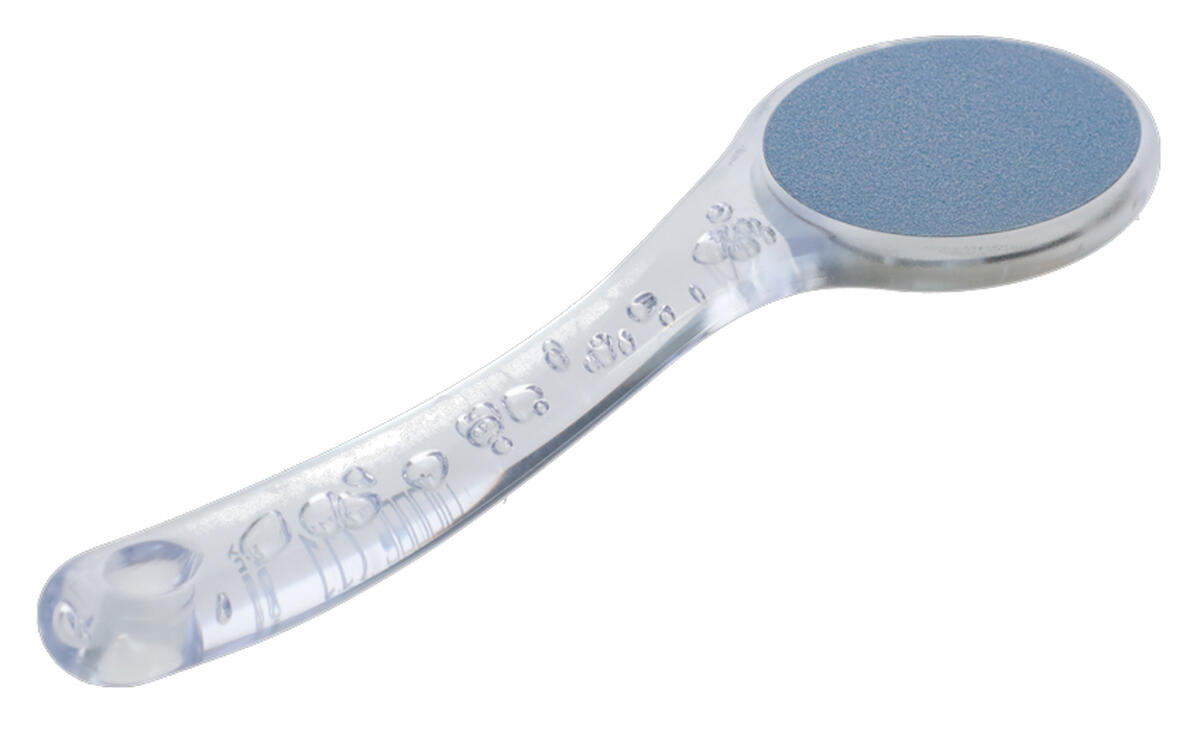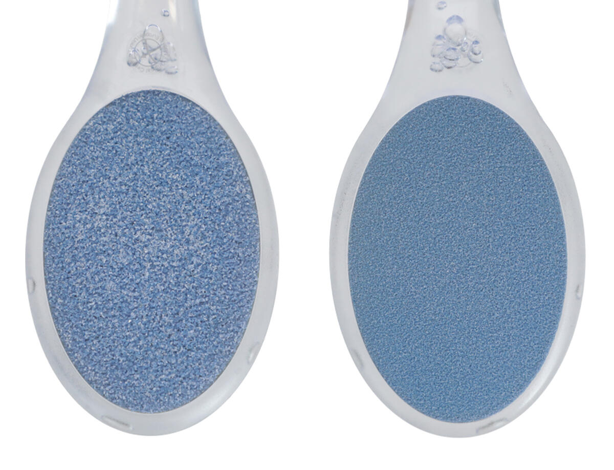 Škrabka na päty má obojstrannú hlavicu s dvomi rôznymi povrchmi:
