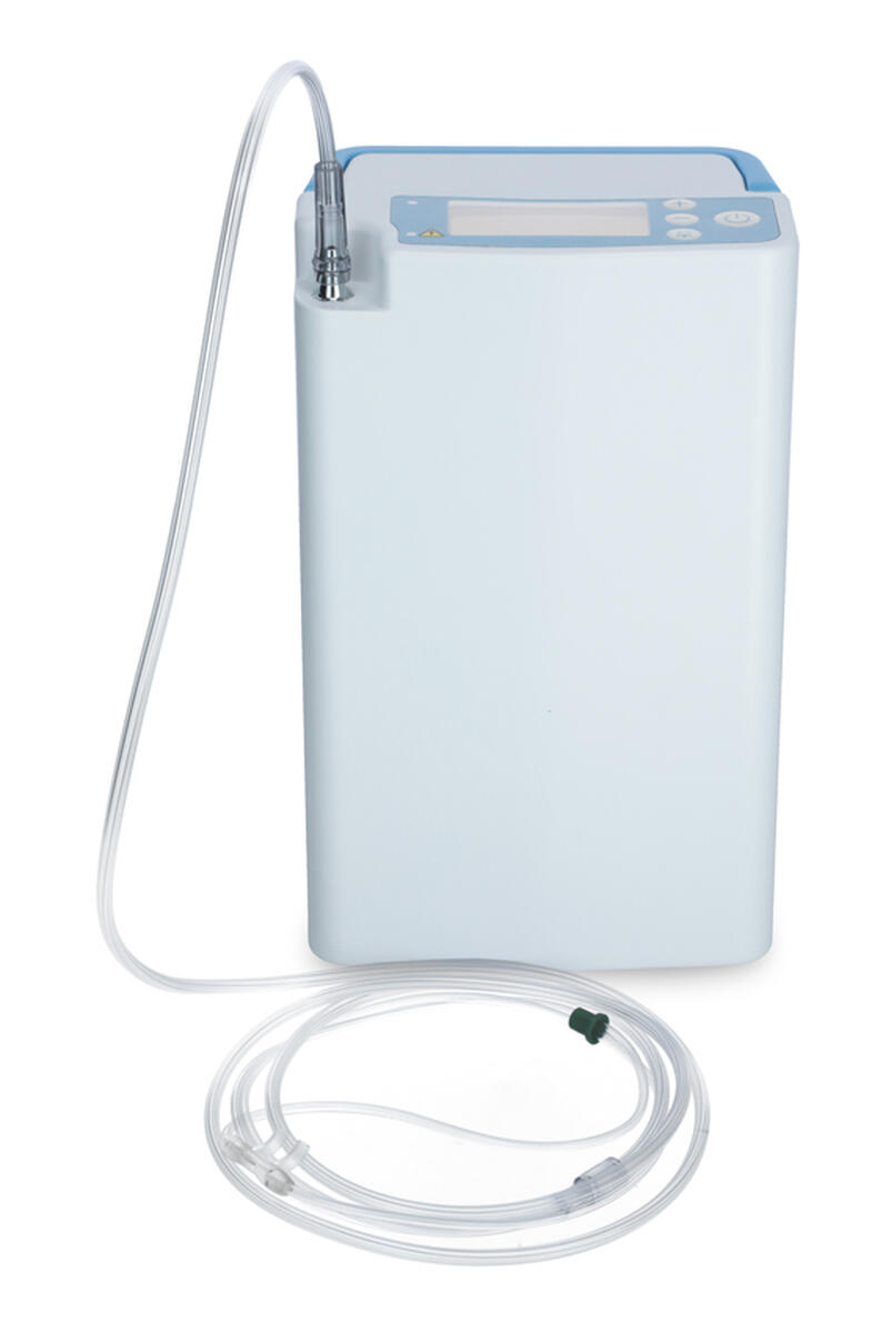 Malý a ľahký prenosný kyslíkový koncentrátor s hmotnosťou len 2,2 kg ponúka periodické dávkovanie kyslíka v impulzoch synchronizovaných s dýchaním používateľa prístroja.