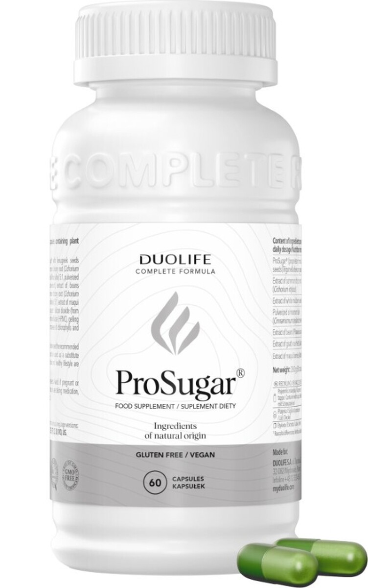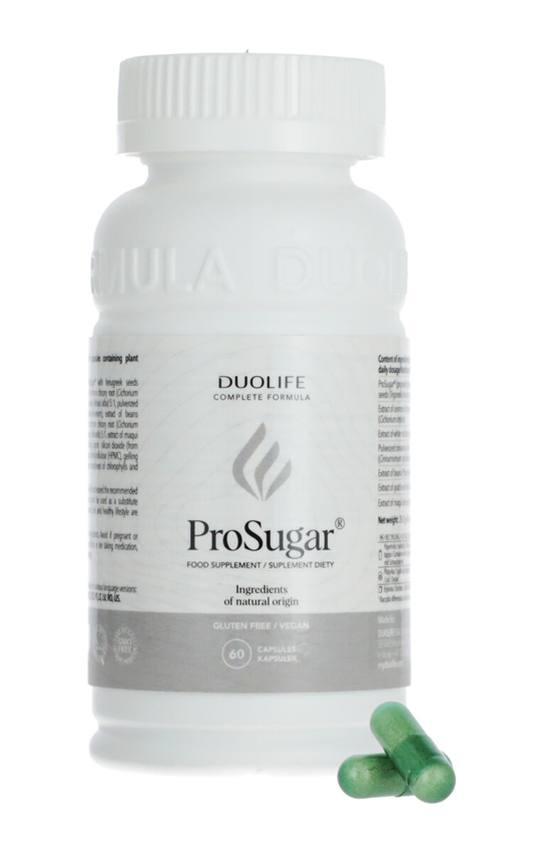 DUOLIFE ProSugar je výživový doplnok navrhnutý na posilnenie metabolizmu živín a na podporu udržiavania správnej hladiny cukru a tukov v krvi. Jeho prírodné zloženie napomáha regulovať hodnoty glukózy a tukov v tele, prispieva k lepšiemu spracovaniu živín a celkovej vitalite organizmu. ProSugar je ideálnou voľbou pre osoby, ktoré chcú mať pod kontrolou svoju chuť na sladké, podporiť trávenie a uľahčiť proces dosahovania cieľov pri kontrole telesnej hmotnosti.