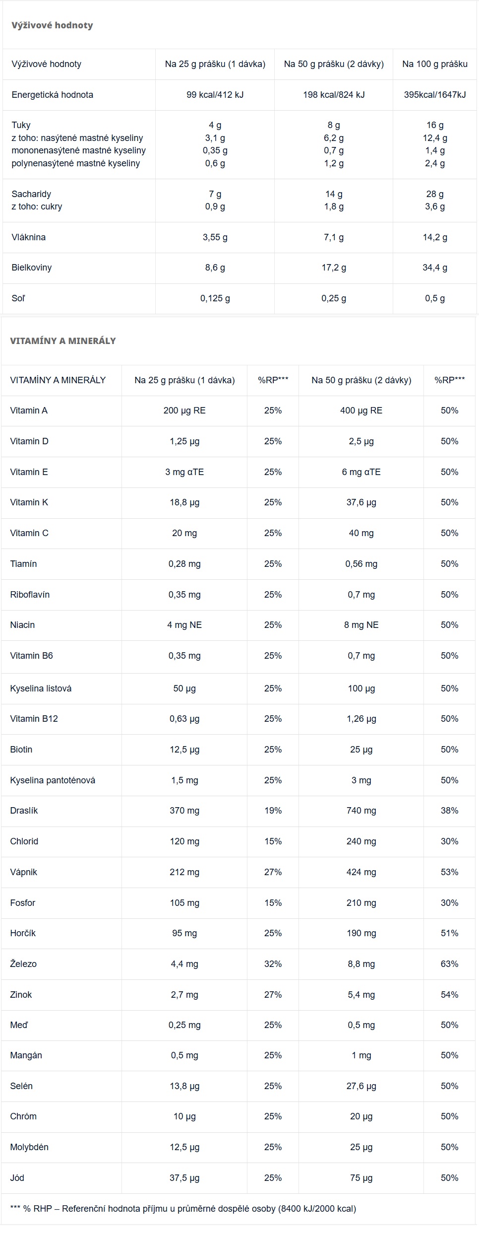 • pridajte jednu plnú odmerku prášku (25 g) do 250 ml rastlinného nápoja alebo mlieka a dobre pretrepte