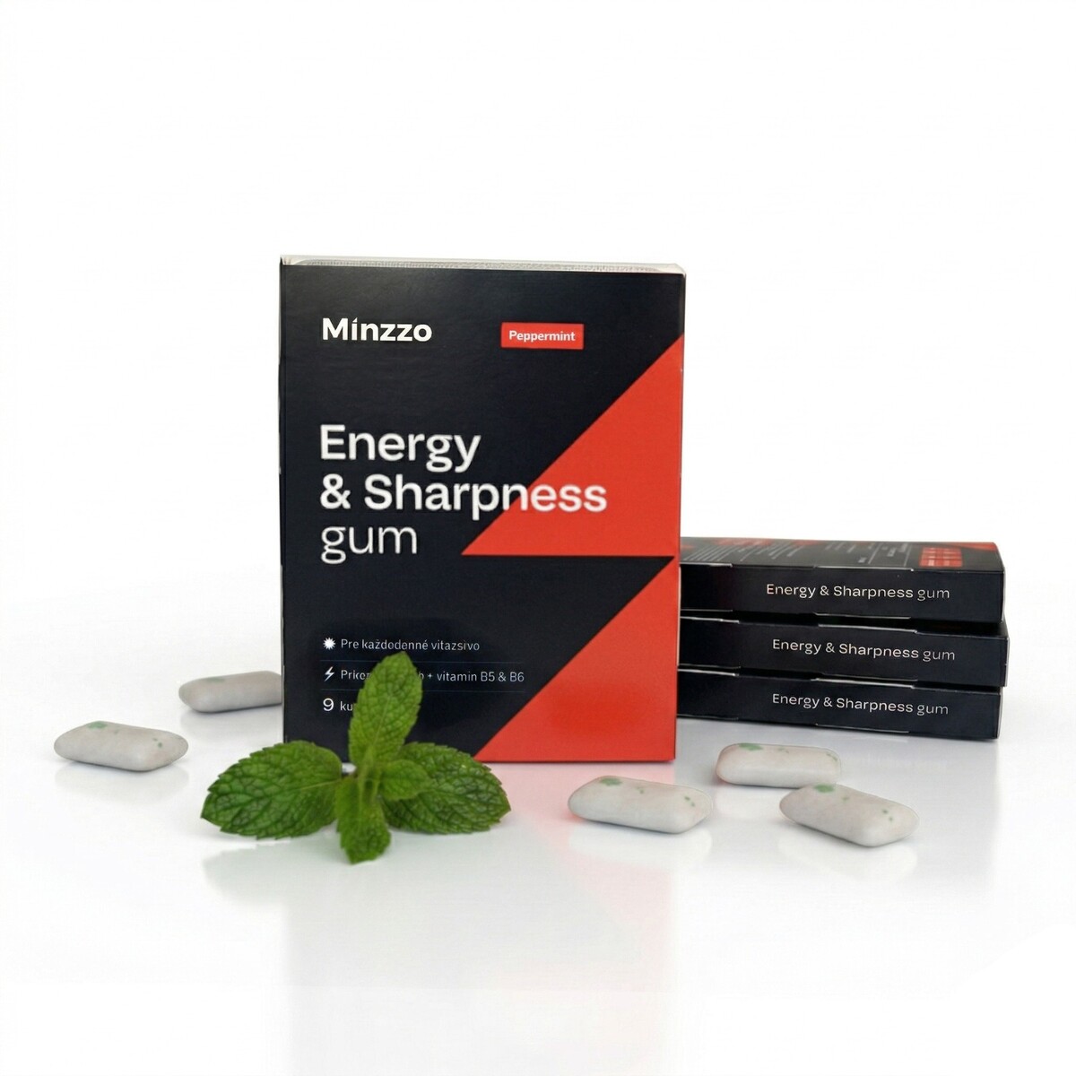Kofeínové žuvačky s vitamínmi B5 a B6 Minzzo Energy & Sharpness gum predstavujú skvelý spôsob, ako doplniť energiu a zlepšiť sústredenie kedykoľvek počas dňa. Tento moderný doplnok stravy proti únave s osviežujúcou príchuťou mäty je navrhnutý tak, aby poskytol rýchly nástup účinku bez zbytočného cukru a kalórií.