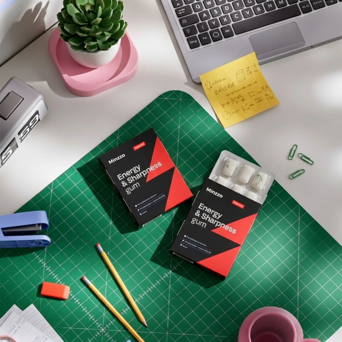 Starostlivo navrhnuté zloženie žuvačiek Minzzo poskytuje stabilnú dávku energie a sústredenia. Na rozdiel od sladených energetických nápojov obsahujú kontrolovanú dávku kofeínu, nevytvárajú energetické výkyvy a nezaťažujú trávenie ani kardiovaskulárny systém. Receptúra je 100 % vegánska, bez lepku, cukru a aspartámu.