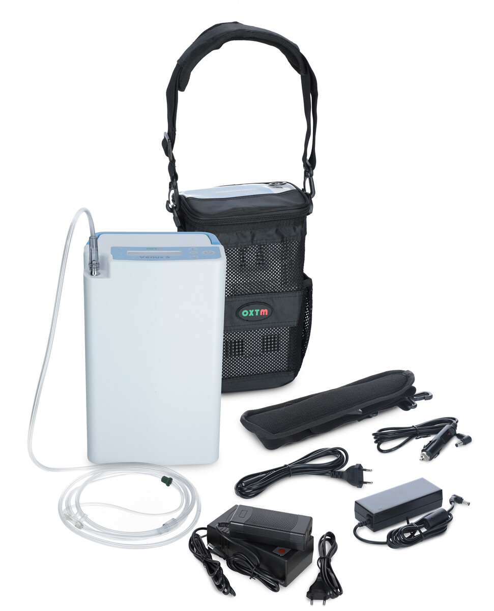Prenosný kyslíkový koncentrátor Venus 6 s externou batériou a nosovou kanylou