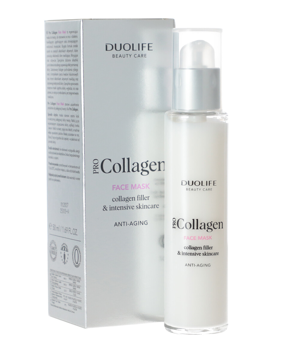 DUOLIFE Pro Collagen Face Mask je intenzívna regeneračná nočná maska na tvár navrhnutá pre náročnú pleť so sklonom k strate elasticity. Prípravok využíva trend "beauty sleep" – počas nočného odpočinku dodáva pokožke látky potrebné na podporu jej vyhladenia, upokojenia a zaistenie sviežeho vzhľadu po prebudení. Starostlivo zvolené zloženie s obsahom 13 aktívnych zložiek vytvára komplexný systém pre starostlivosť aj o tú najnáročnejšiu pleť.