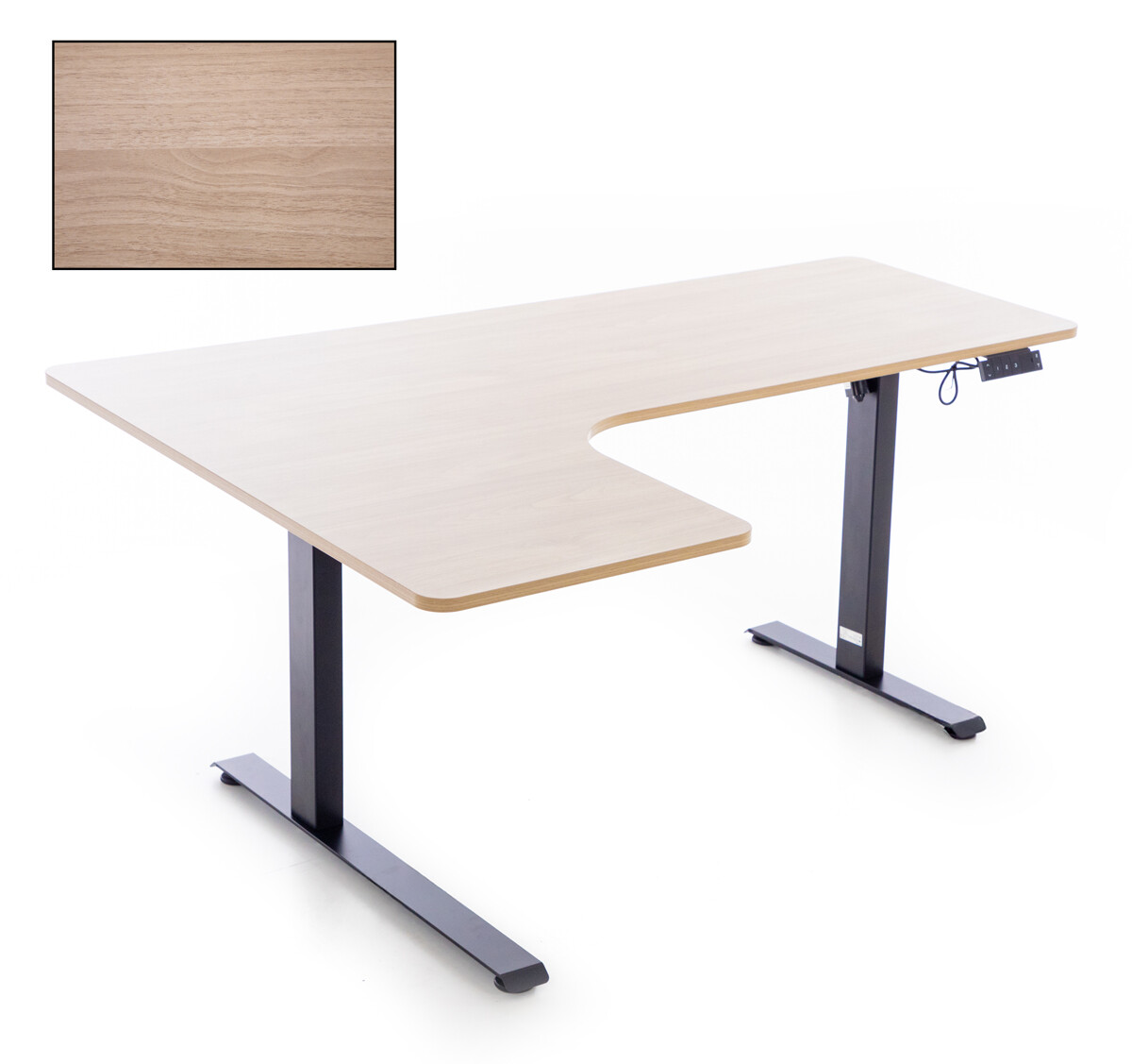 Výškovo nastaviteľný stôl UNIZDRAV 160x110 cm, hnedý dub – ľavý roh