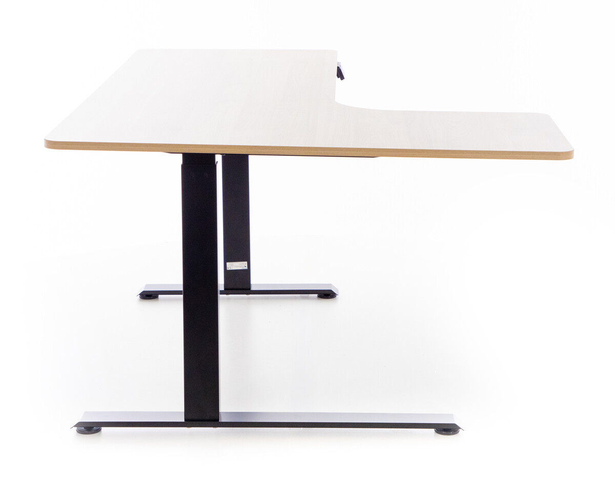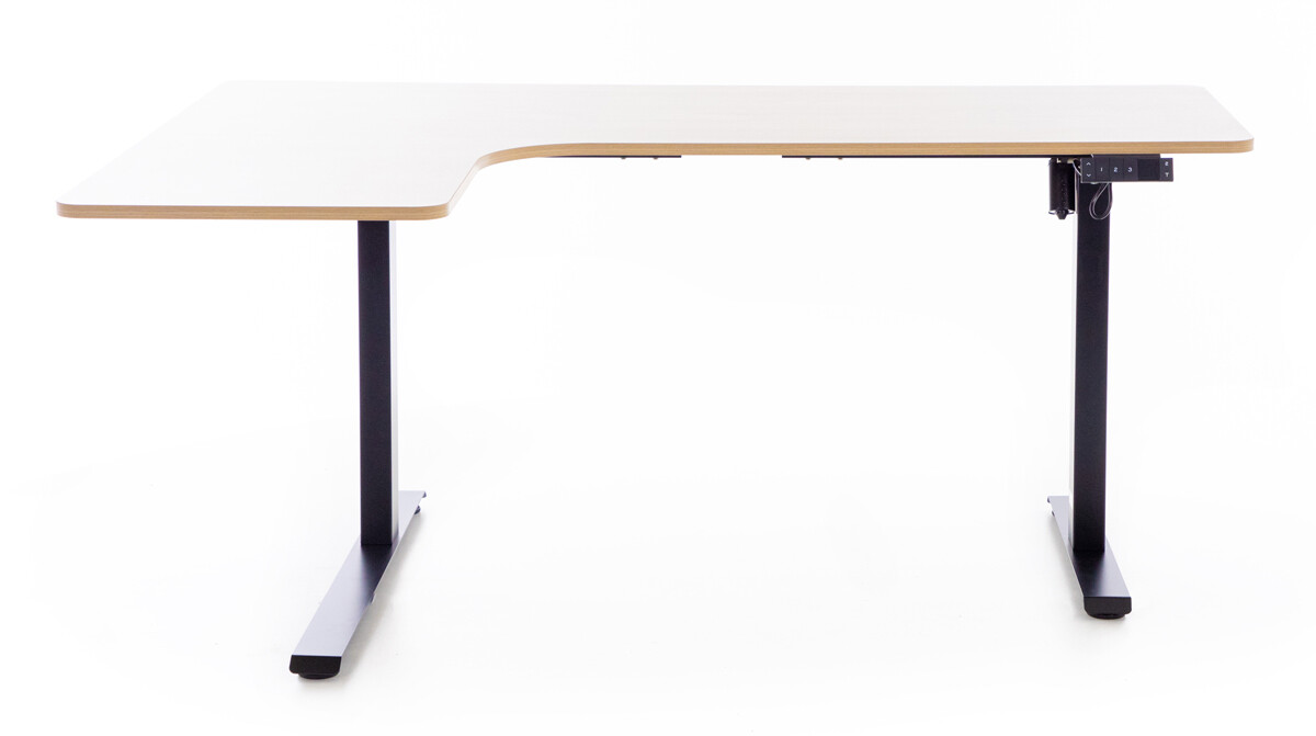 Elektrický výškovo nastaviteľný stôl (ľavý roh) na striedavú prácu v sede a stoji. Pamäť 3 výškových pozícií a časovač pre lepší komfort aj produktivitu.
