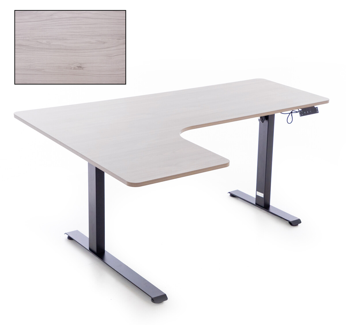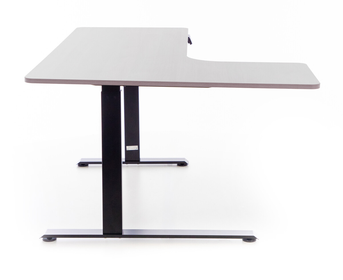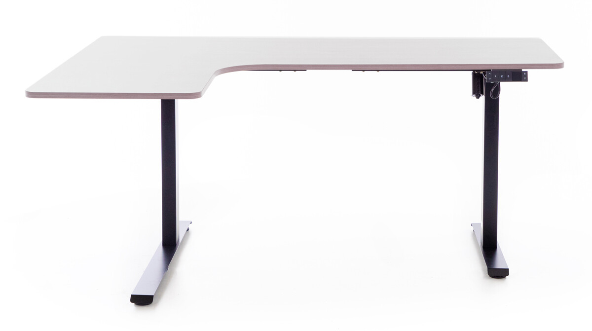 Elektrický výškovo nastaviteľný stôl (ľavý roh) na striedavú prácu v sede a stoji. Pamäť 3 výškových pozícií a časovač pre lepší komfort aj produktivitu.