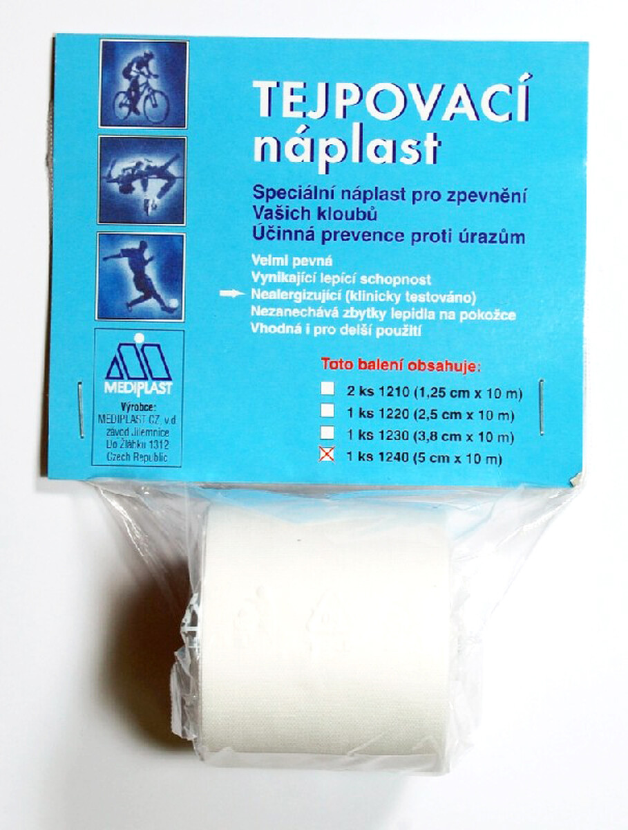 Tejpovacia náplasť poskytuje zvýšenú pevnosť a prevenciu pri nadmernej záťaži kĺbov, svalových úponov, šliach, prstov, členkov, kolien a pri fixácii pohybového aparátu.